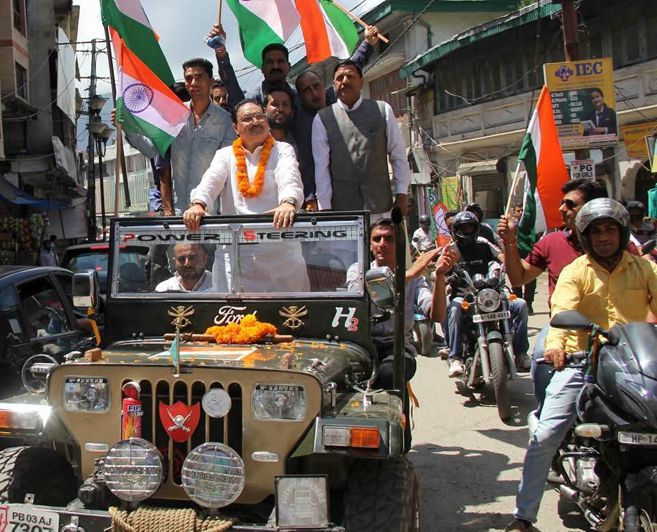 Home मेरी आन मेरी शान मेरी जान “तिरंगा” । सोलन में हिमाचल प्रदेश के वरिष्ठ भाजपा नेता और केंद्र की सरकार में स्वास्थ्य एवं परिवार कल्याण मंत्री श्री जगत प्रकाश नडा जी की आगुवाई में तिरंगा यात्रा निकाली गई। बहुत से नौजवान इस यात्रा में शामिल हुए देशभक्ति का माहौल देखने योग्य था । भारत […]