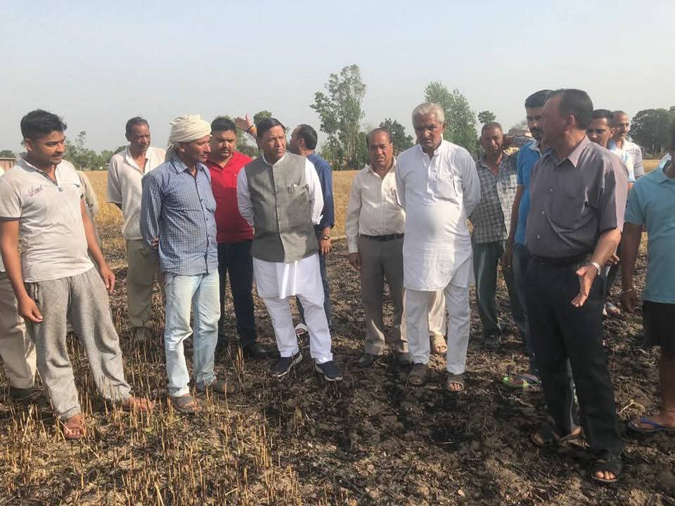 फसलों को हुए नुकसान का जायजा लेते हुए