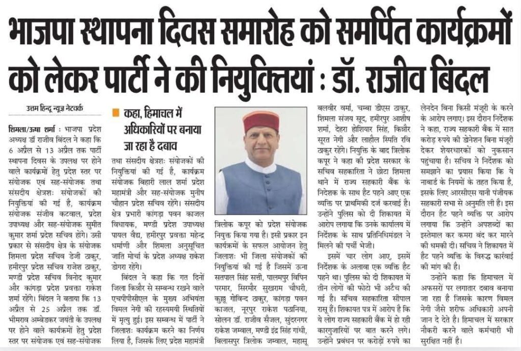 Home डा. बिन्दल ने माता बालासुंदरी मंदिर व माता भंगायानी देवी मंदिर में माथा टेका 31 March, 2025 Author Main Photo Section Main Content Section भाजपा प्रदेश अध्यक्ष डा. राजीव बिन्दल ने कहा कि आज नवरात्रि के शुभ अवसर पर माता बालासुंदरी मंदिर व माता भंगायानी देवी मंदिर जाने का सौभाग्य प्राप्त हुआ। रास्ते में […]