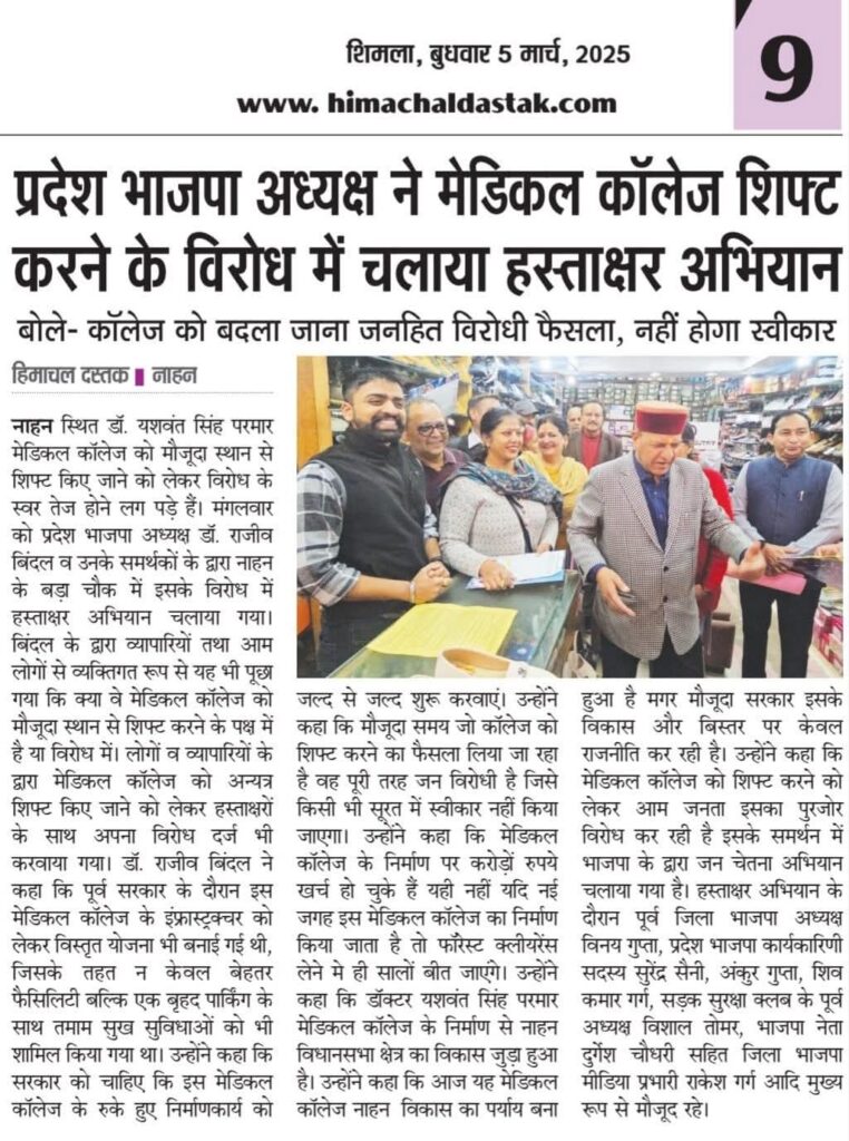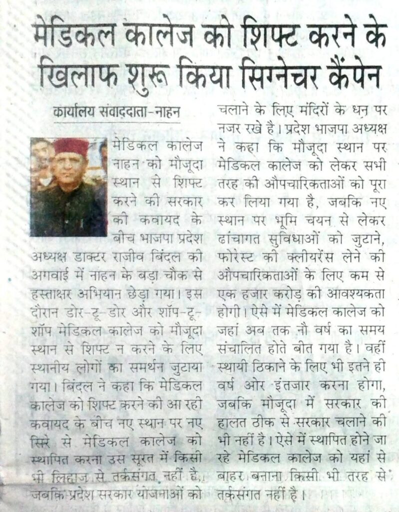 मैडिकल कॉलेज नाहन हस्ताक्षर अभियान: प्रकाशित समाचार Read More »