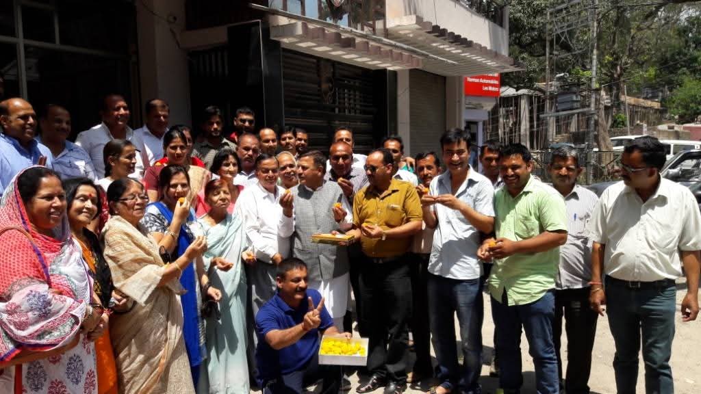 डा. राजीव बिन्दल ने बताया कि नाहन भाजपा के कार्यकर्ताओं ने नाहन कार्यालय में भाजपा की जीत पर लड्डू बाँट कर जश्न मनाया। क्योंकि आज भारतीय जनता पार्टी के लिए ऐतिहासिक दिन है। भाजपा ने पहली बार पूर्वाेतर भारत के असम प्रदेश में सरकार पूर्ण बहुमत से बनाई है।