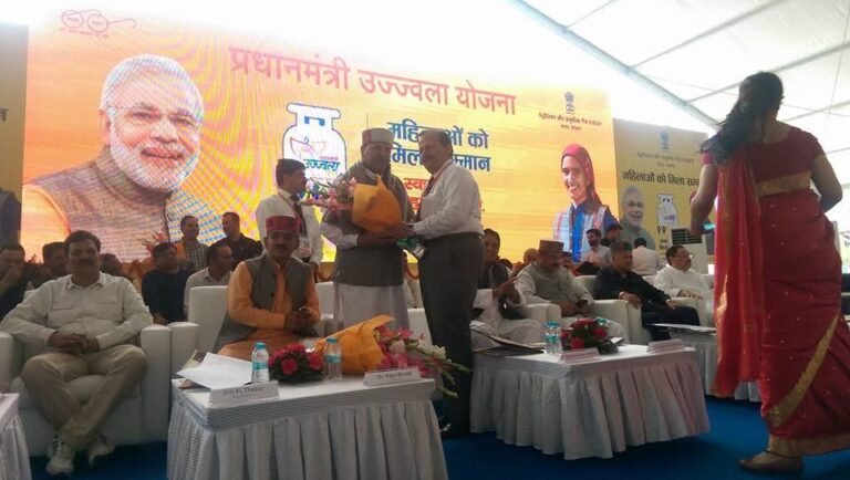 प्रधान मंत्री उज्जवला योजना के शुभारंभ के दौरान सोलन ठोडो ग्राउंड में अभिनंदन ।
