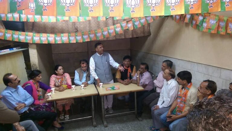 शिमला नगर निगम के वार्ड समरहिल में कार्यकर्ताओं के साथ बैठक करते हुए।