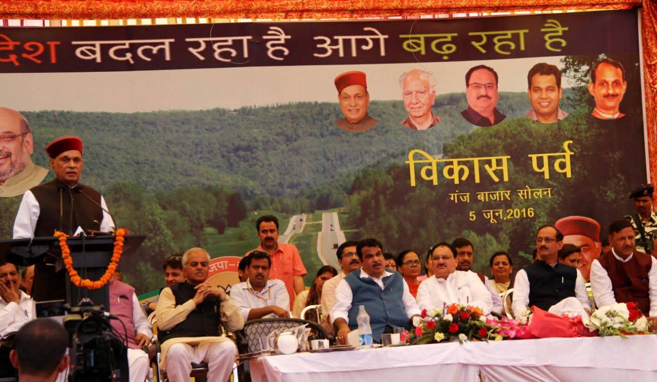 केन्द्रीय सड़क एंव परिवहन मंत्री श्री नितिन गडकरी जी द्वारा सोलन में आयोजित विकास पर्व पर 34000 करोड़ रूपये की सड़कों की घोषणा की गयी। उन्हांेने कहा कि प्रदेश सरकार चुस्ती दिखाए और जल्दी सड़कों का काम शुरू करे। केंद्र की मोदी सरकार का काम हिमाचल सरकार को पैसे देना है