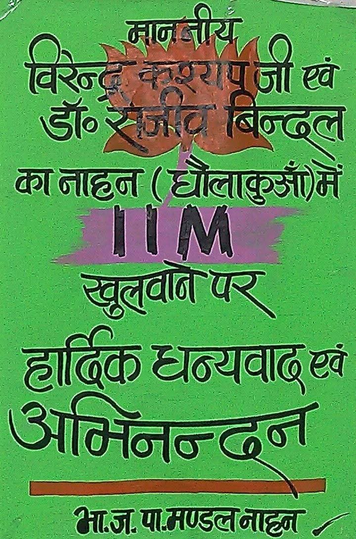 भाजपा कार्यकर्ताओं द्वारा इस अवसर पर एक सुन्दर पोस्टर प्रदर्शित किया गया जिसमें सिरमौर में आईआईएम खोलने पर आभार प्रकट किया गया।
