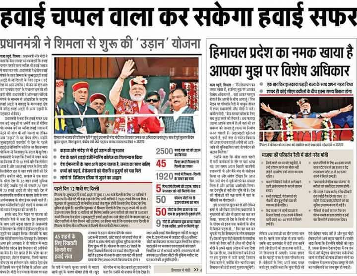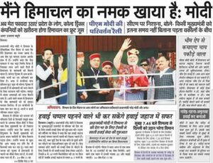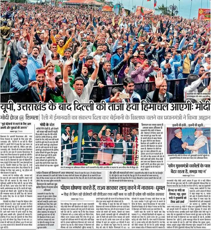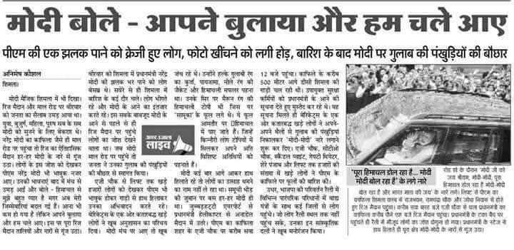 देश के प्रधानमंत्री श्रद्धेय श्री नरेंदर मोदी जी द्वारा रिज़ मैदान शिमला में की गई रैली को देश-प्रदेश के अख़बारों ने प्रमुखता से स्थान दिया इसके लिए मीडिया का आभार।