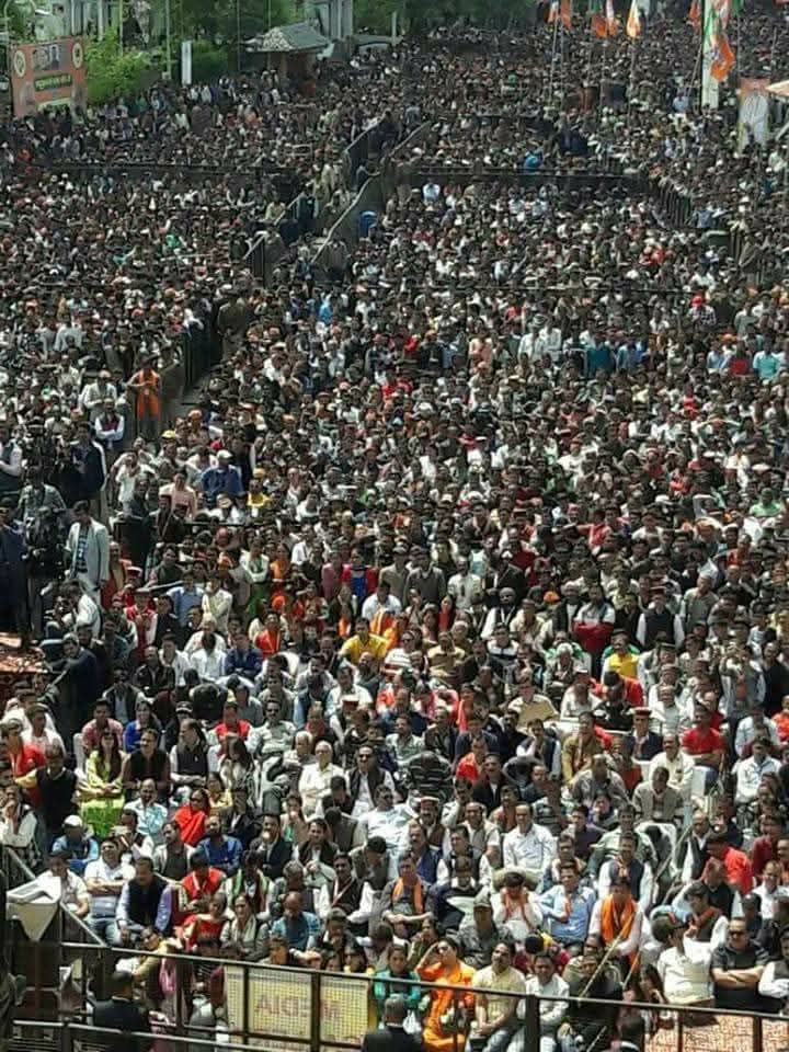 प्रधानमंत्री श्री नरेन्द्र मोदी जी की शानदार रैली के लिए सभी कार्यकर्ताओं को बहुत-बहुत बधाई एवं आभार। इस विशाल जनसमूह को देख कर परिवर्तन की लहर नज़र आ रही है। यह बहुत ही शानदार रैली रही। धन्यवाद