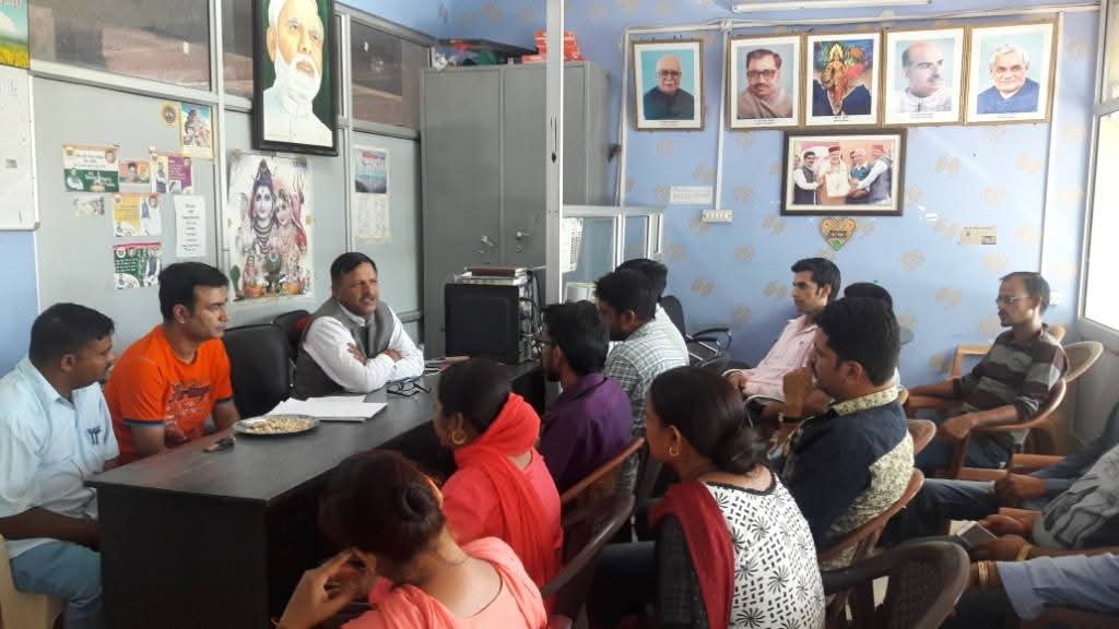 डा. राजीव बिन्दल की अध्यक्षता में नाहन कार्यालय में भारतीय जनता युवा मोर्चा नाहन मंडल के पदाधिकारियों की एक महतवपूर्ण बैठक आयोजित की गई। बैठक में युवा मोर्चा और भाजपा को कैसे मजबूत किया जाये इस विषय पर विस्तृत चर्चा की गई।