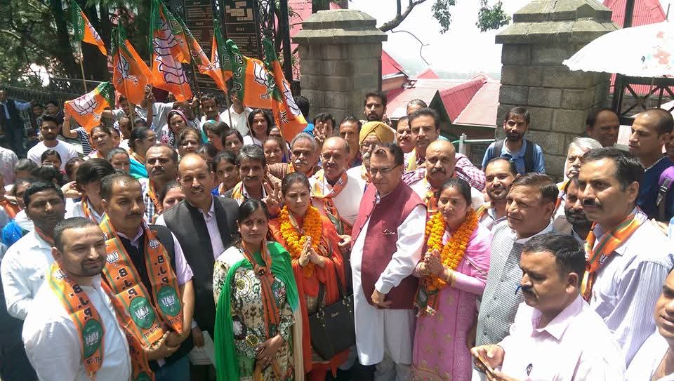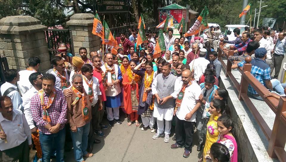 शिमला नगर निगम चुनाव में भारतीय जनता पार्टी फतह की ओर बढ़ती हुई। नामांकन पत्र भरने से पहले वार्ड न0 8 से श्रीमती किरण बाबा जी की हौसला हफजाई करते हुए।