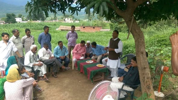 डा. राजीव बिन्दल कौलावाला भूड पंचायत में सत्ता परिवर्तन यात्रा के दौरान स्थानीय निवासियों को संबोधित करते हुए। उन्होंने प्रदेश की कांग्रेस सरकार की नाकामियों के बारे में अवगत करवाया।