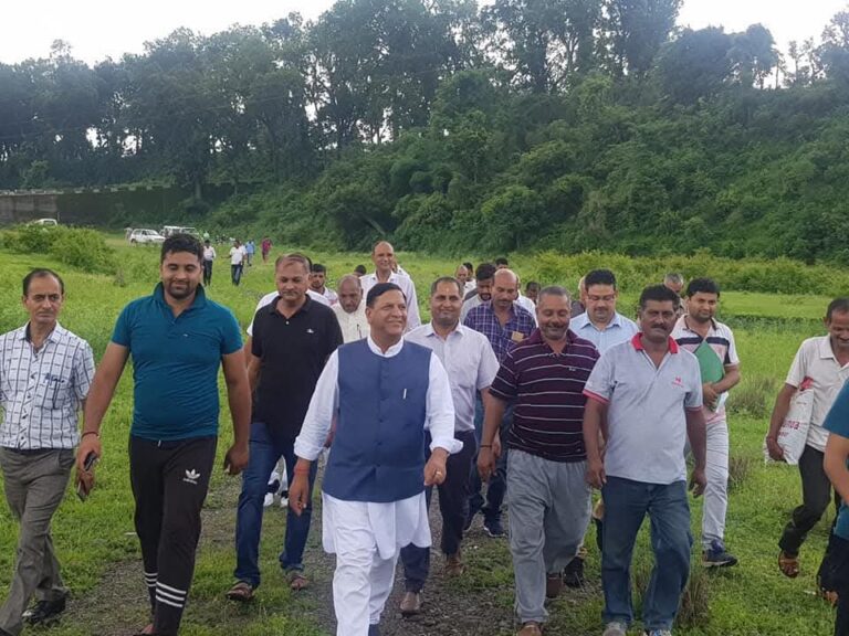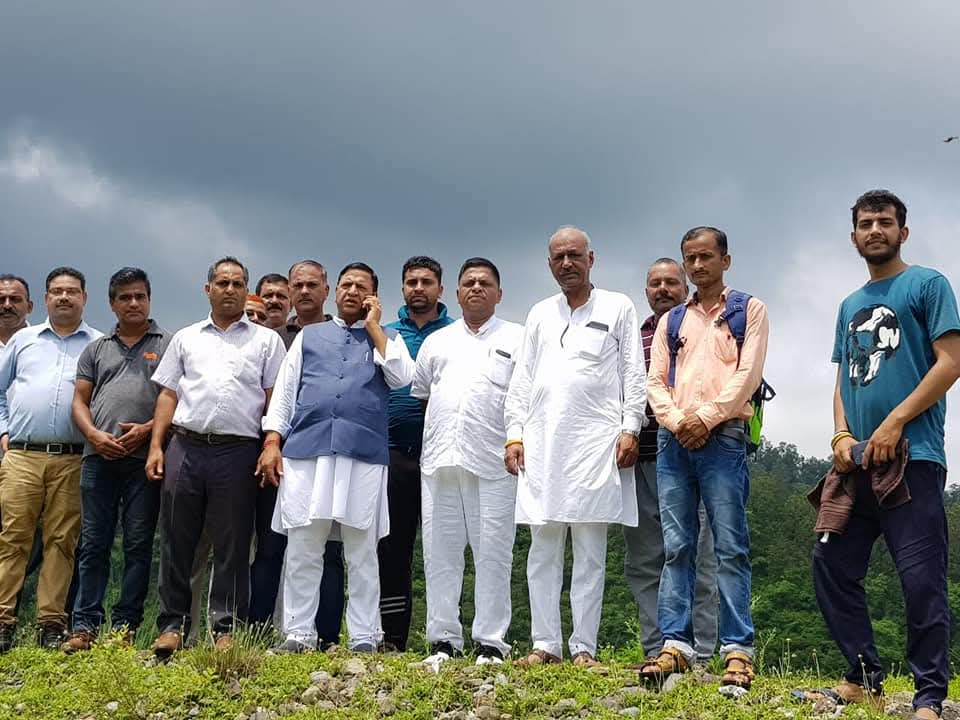 डा. राजीव बिन्दल नाहन विधानसभा के कोलर में प्रस्तावित हॉकी स्टेडियम के समीप अटल आदर्श विद्यालय निर्माण के लिए अधिकारियों के साथ भूमि का निरीक्षण करते हुए।