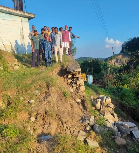 झील गांव में भी घरों के ऊपर का पहाड़ धंस रहा है, घरों को खतरा हो गया है।