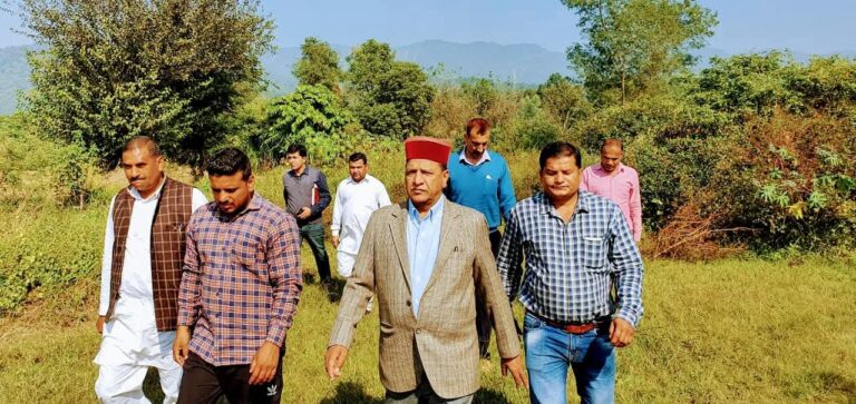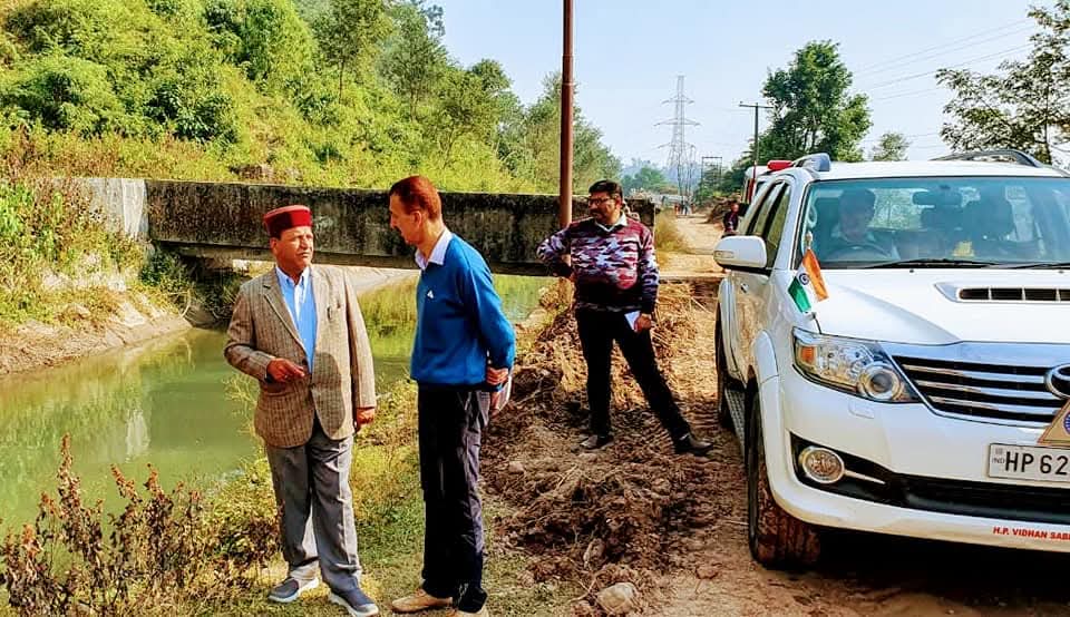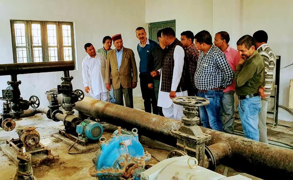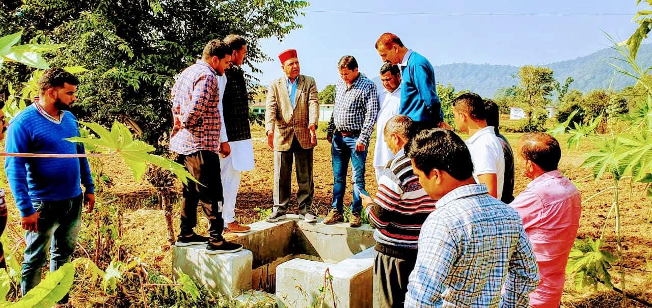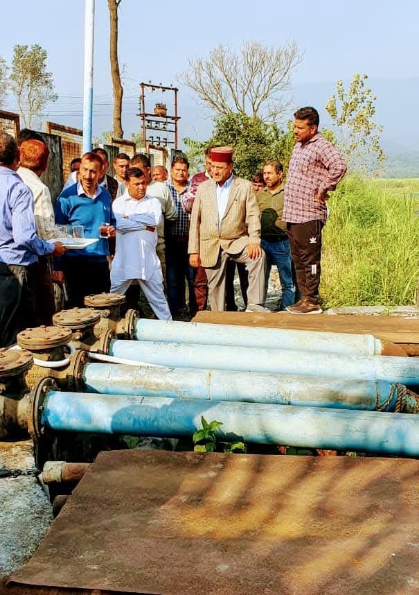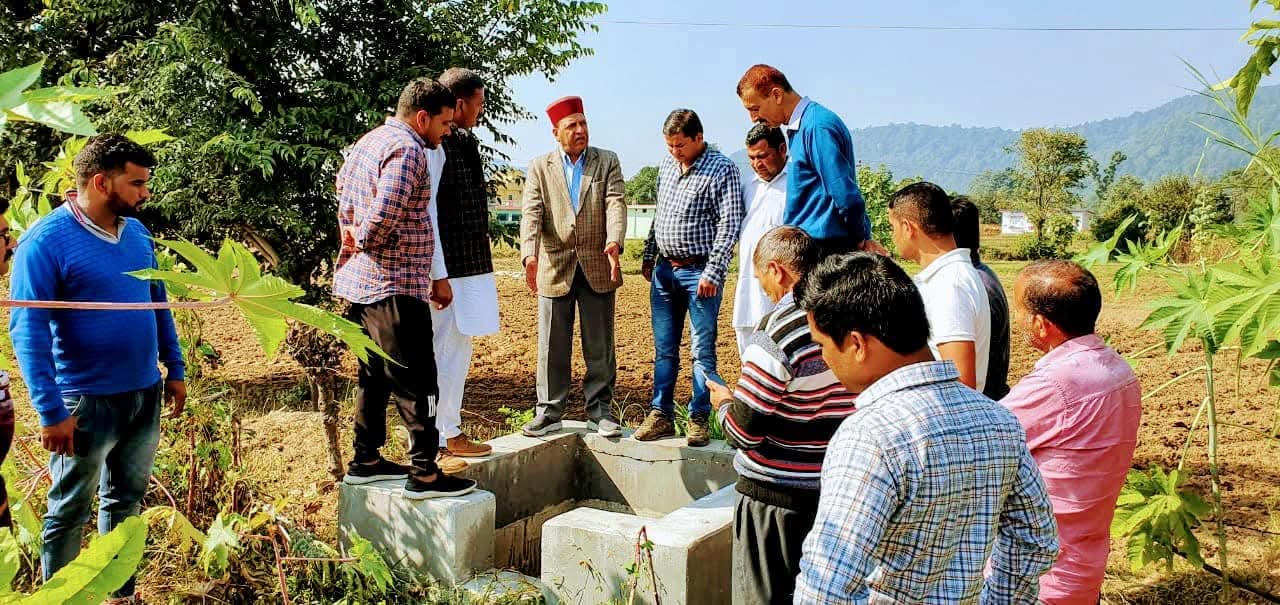 विधानसभा अध्यक्ष डा. राजीव बिन्दल रविवार को रामपुर-भारापुर की विभिन्न सिंचाई योजनाओं का आईपीएच अधिकारियों से साथ निरीक्षण करते हुए।