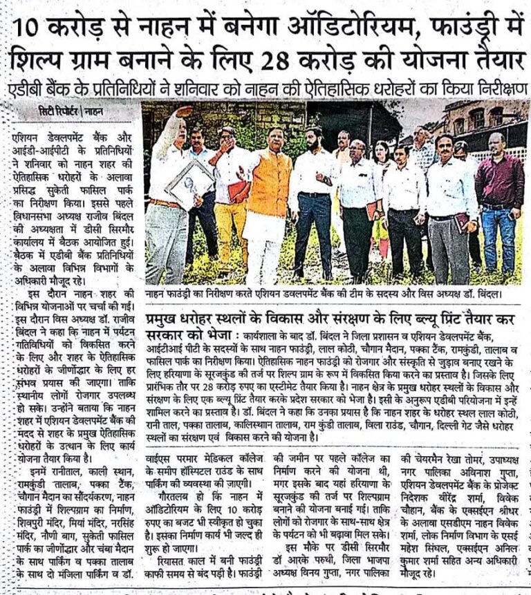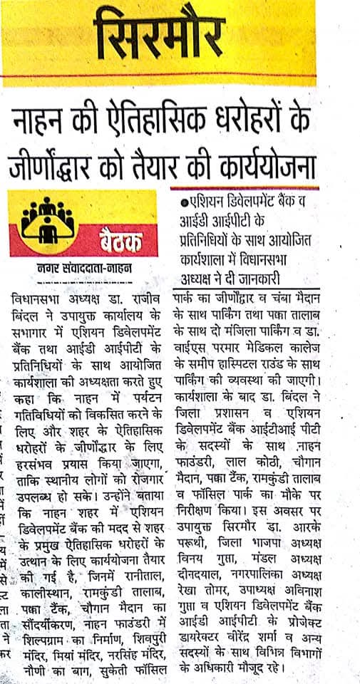 एशियन डेवलपमेंट बैंक टीम के नाहन प्रवास की प्रिंट मीडिया कवरेज..