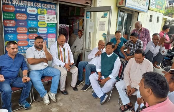 भाजपा प्रदेश अध्यक्ष डा. राजीव बिन्दल ने नाहन विधानसभा क्षेत्र के मोगीनन्द में काला आम्ब पंचायत के भाजपा कार्यकर्ताओं के साथ बैठक में भाग लिया।