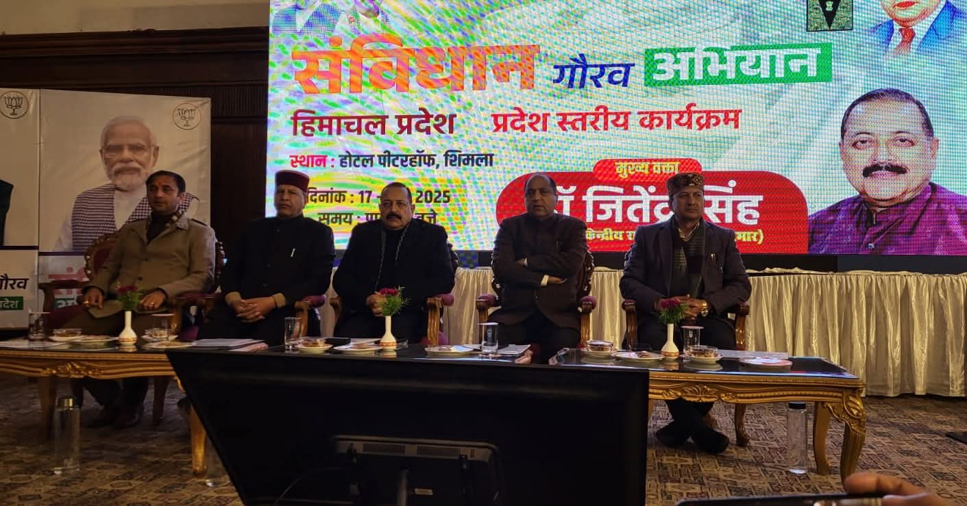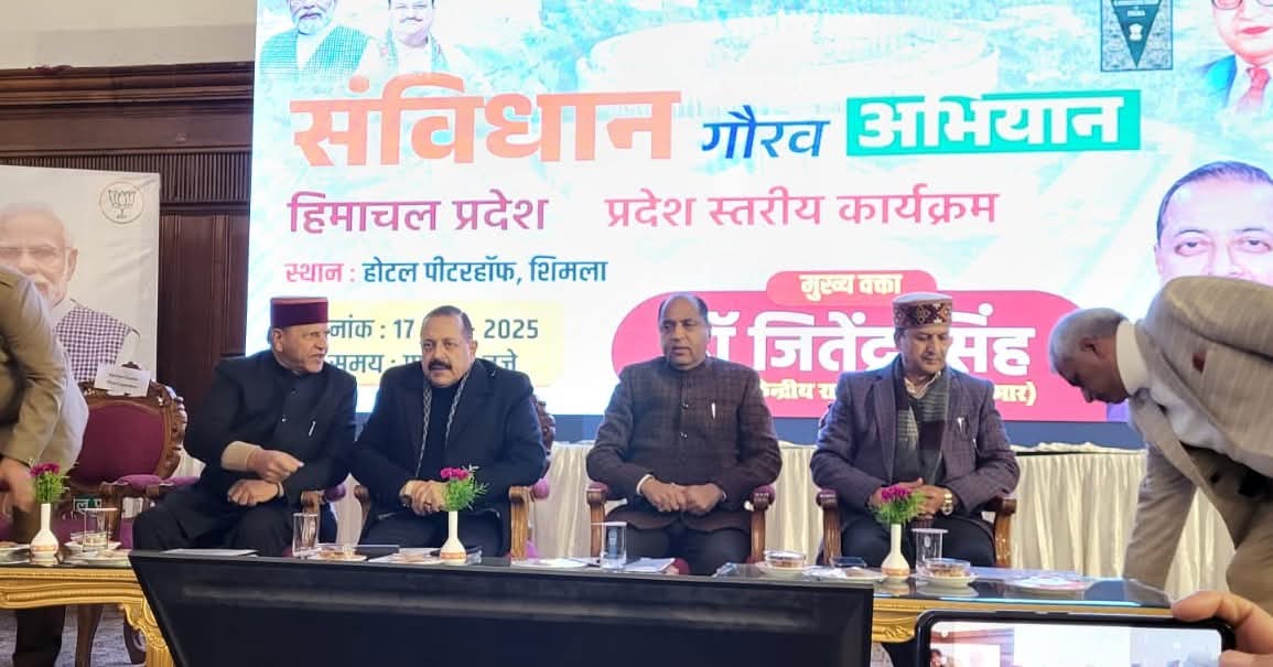 भाजपा प्रदेश अध्यक्ष डा. राजीव बिन्दल ने बताया कि शिमला के पीटरहॉफ में केंद्रीय राज्य मंत्री डॉ. जितेन्द्र सिंह संविधान गौरव अभियान के अंतर्गत प्रदेश स्तरीय कार्यक्रम में पहुंचे हैं, जहां पर वे एक संगोष्ठी को संबोधित करेंगे।