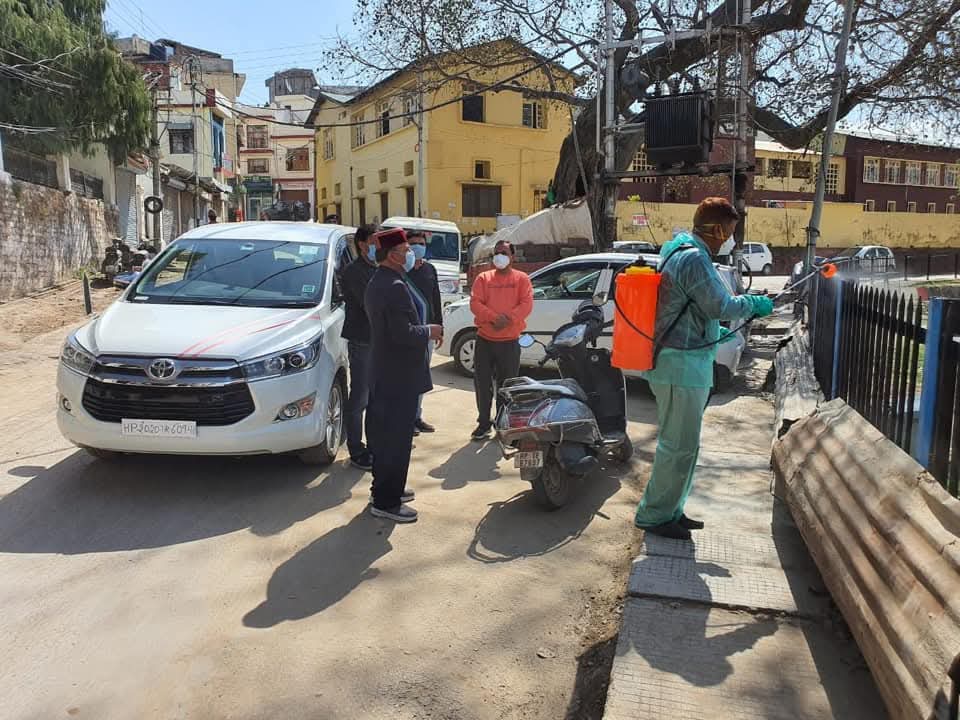 कोरोना के दृष्टिगत नाहन शहर में डिसिन्फ़ेक्टंट छिड़काव