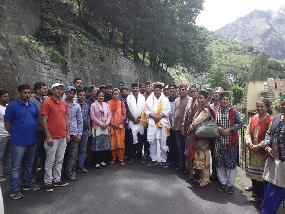 जनमंच के लिए किन्नौर पहुंचने पर डा. बिन्दल का कार्यकर्ताओं द्वारा स्वागत