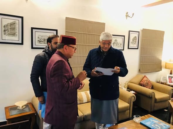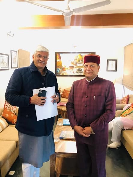 भाजपा प्रदेश अध्यक्ष डा. राजीव बिन्दल माननीय केंद्रीय जल शक्ति मंत्री श्री गजेंद्र सिंह शेखावत जी से आज नई दिल्ली में नाहन निर्वाचन क्षेत्र के जल संबंधी विषयों पर चर्चा करते हुए।