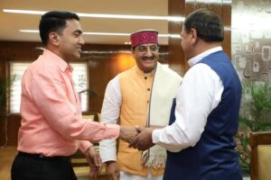 विधानसभा अध्यक्ष डा. राजीव बिन्दल केन्द्रीय मानव संसाधन विकास मंत्री आदरणीय श्री रमेश पोखरियाल ‘निशंक’ जी से नई दिल्ली में शुक्रवार प्रातः शिष्टाचार भेंट करते हुए..!