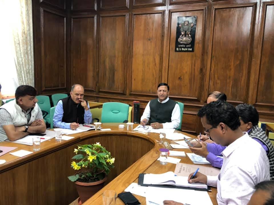 विधानसभा अध्यक्ष डा. राजीव बिन्दल विधानसभा परिसर में मीडिया के लोगों व अधिकारियों के साथ आगामी मानसून सत्र की तैयारियों हेतु एक बैठक की अध्यक्षता करते हुए।