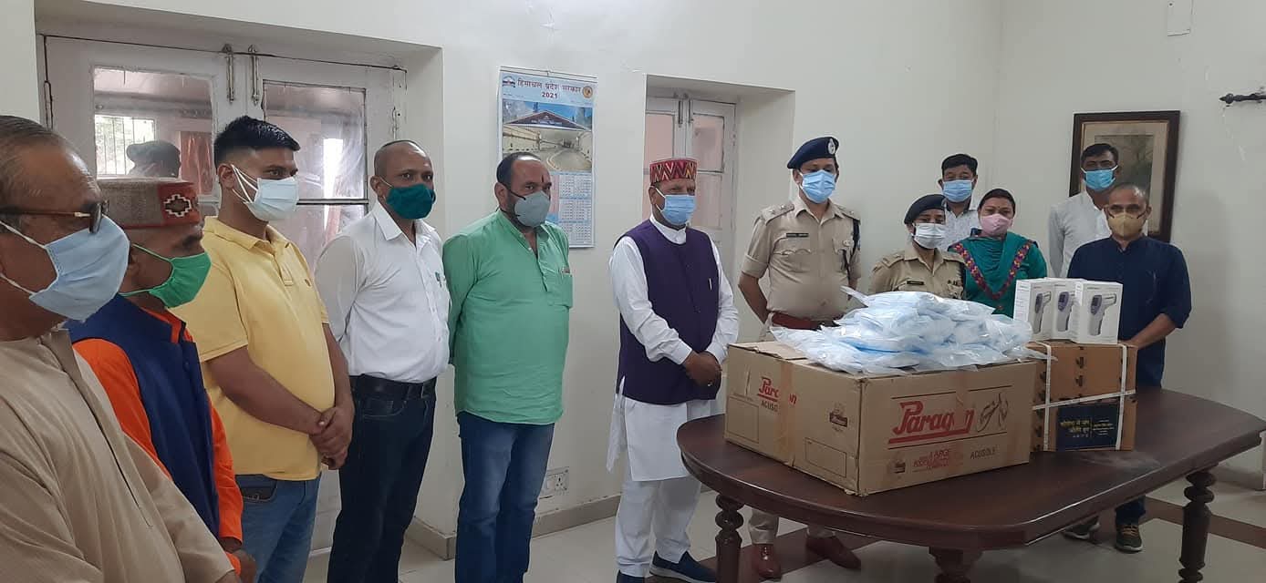 डा. बिन्दल ने केन्द्रीय मंत्री अनुराग ठाकुर द्वारा भेजी गई कोरोना सामग्री पुलिस अधीक्षक को भेंट की