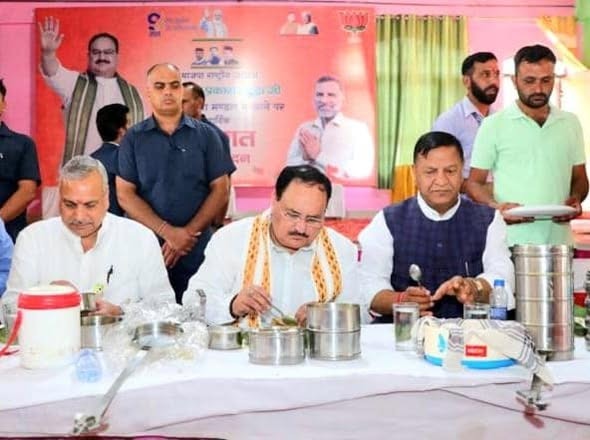 भाजपा प्रदेश अध्यक्ष डा. राजीव बिन्दल ने जिला बिलासपुर के झंडूता विधानसभा क्षेत्र में माननीय राष्ट्रीय अध्यक्ष भाजपा श्री जगत प्रकाश नड्डा जी के साथ टिफ़िन बैठक के माध्यम से स्थानीय कार्यकर्ताओं के साथ भोजन किया