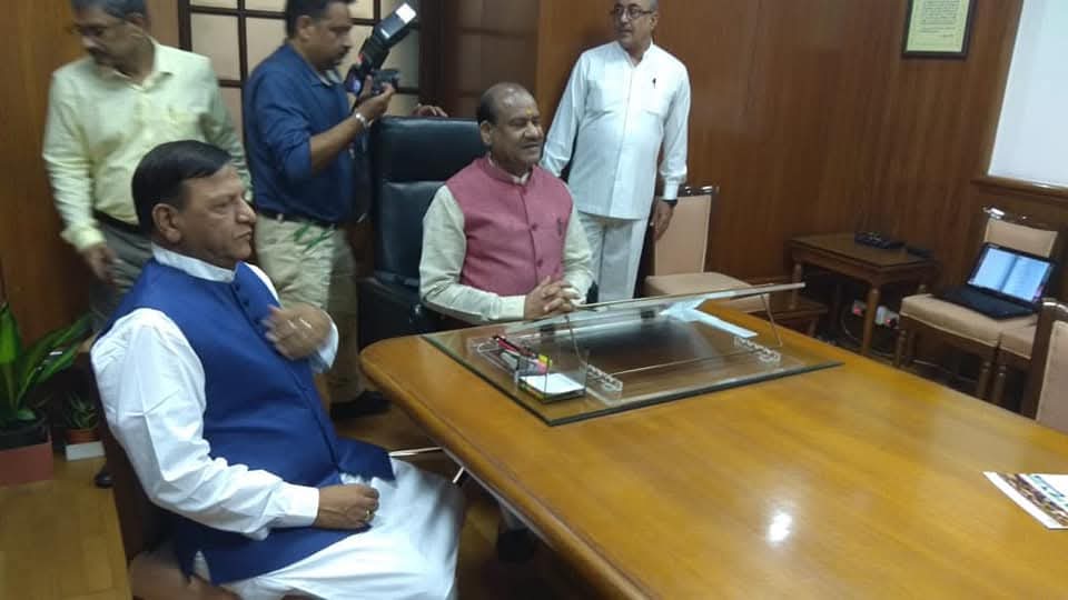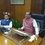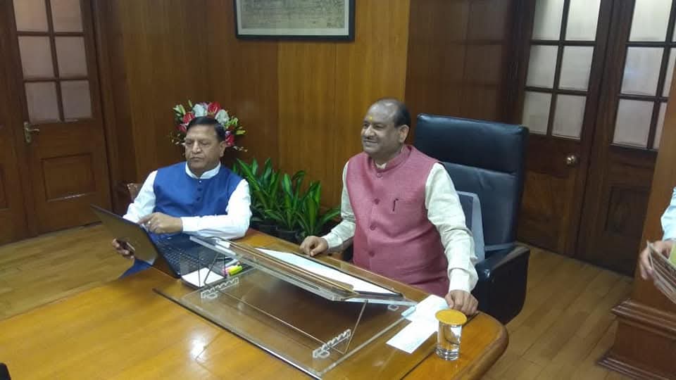 विधानसभा अध्यक्ष डा. राजीव बिन्दल बुधवार को नई दिल्ली में माननीय लोक सभा अध्यक्ष श्री ओम बिड़ला जी को उनके कक्ष में ई- विधान के संबंध में जानकारी प्रदान करे हुए।