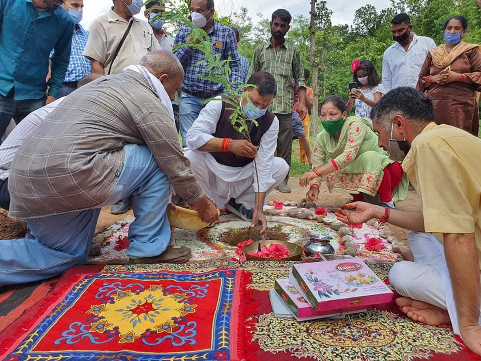 डा. राजीव बिन्दल वन महोत्सव के तहत नाहन विधानसभा क्षेत्र की परदुनि पंचायत में पौधरोपण करते हुए।