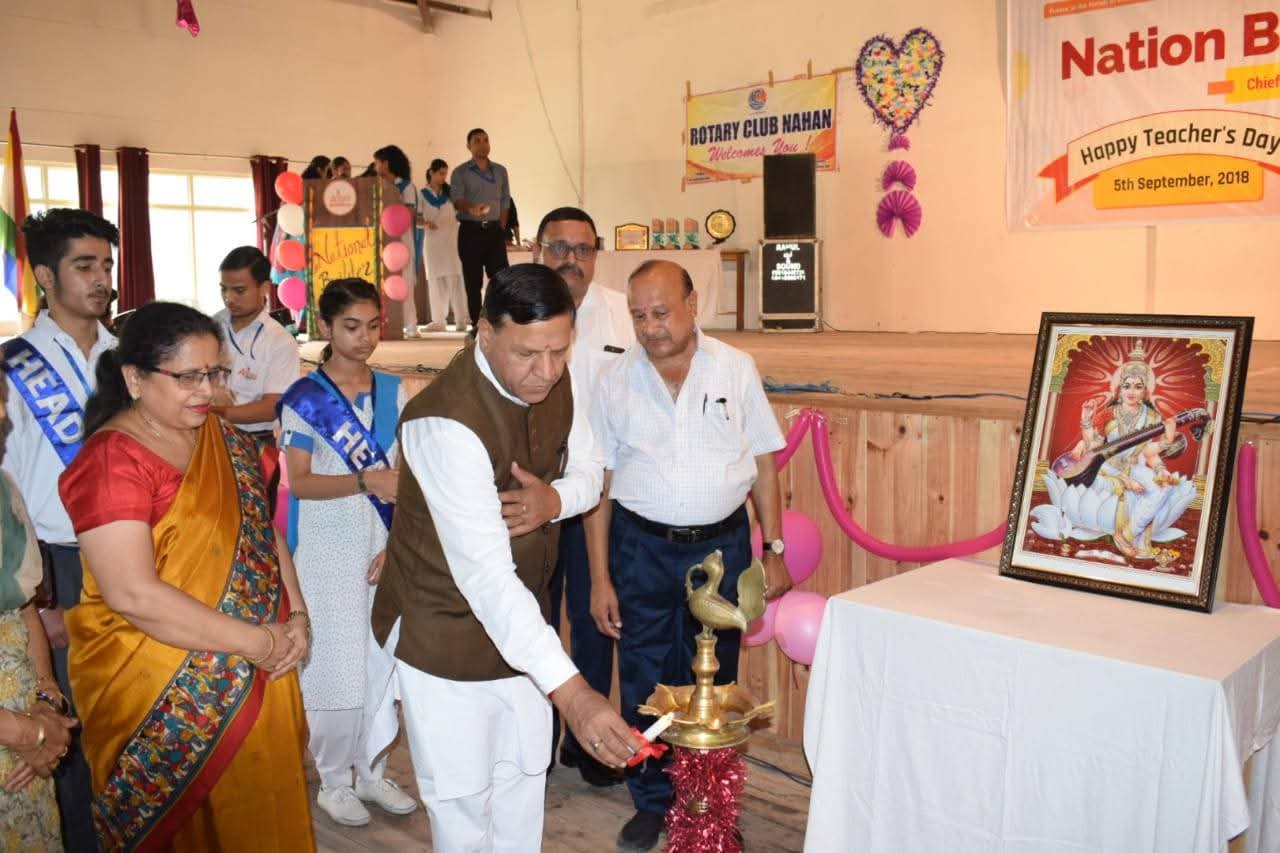 विधानसभा अध्यक्ष डा. राजीव बिन्दल शिक्षक दिवस के अवसर पर, माता पदमावती शिक्षण संस्थान, नाहन में आयोजित कार्यक्रम में भाग लेते हुए। उन्होंने इस अवसर पर सभी प्रदेश वासियों को शिक्षक दिवस की बधाई दी।