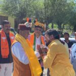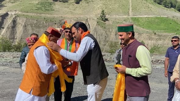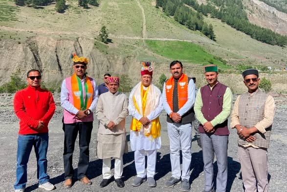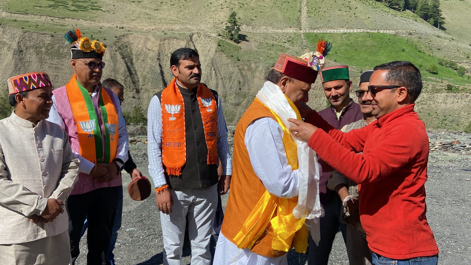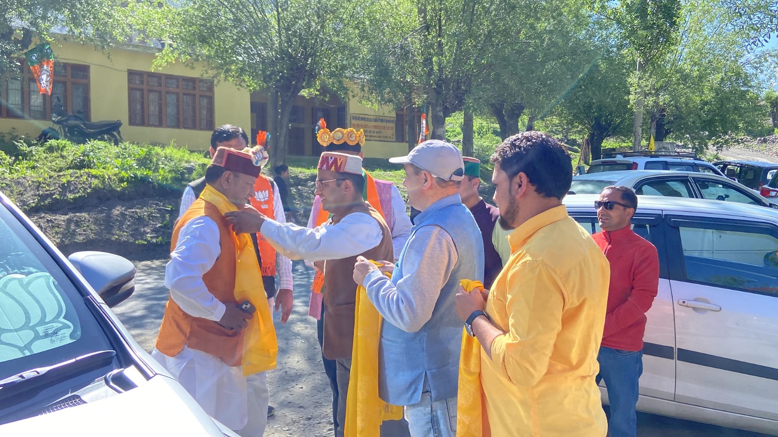 भाजपा प्रदेश अध्यक्ष डा. राजीव बिन्दल का लाहौल स्पीति के उदयपुर में भाजपा कार्यकर्ताओं की बैठक लेने के लिए पहुंचने पर भाजपा कार्यकर्ताओं द्वारा स्वागत के दौरान उनसे मिलते हुए।