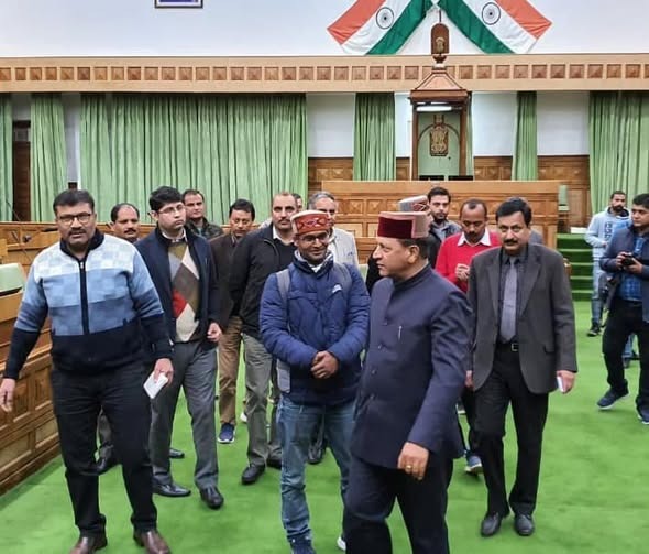 विधानसभा अध्यक्ष डा. राजीव बिन्दल 9 दिसंबर से 14 दिसंबर तक तपोवन धर्मशाला में आयोजित होने वाले विधान सभा के शीतकालीन स्तर से पूर्व, सत्र की तैयारियों का जायजा लेते हुए। डा. बिन्दल मीडिया प्रतिनिधियों के साथ भी मुखातिब हुए।