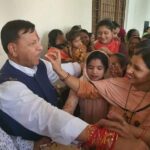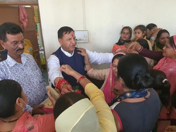 डा. राजीव बिन्दल ने नाहन शहर के वार्ड न. 11 और वार्ड न. 13 की महिलाओं द्वारा रविदास धर्मशाला, नाहन में आयोजित रक्षा बंधन कार्यक्रम में भाग लिया।