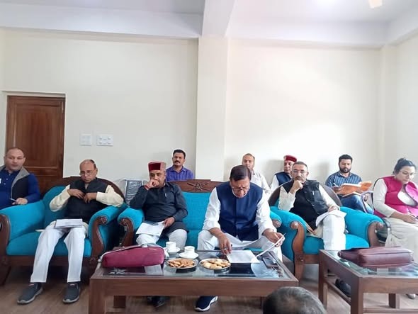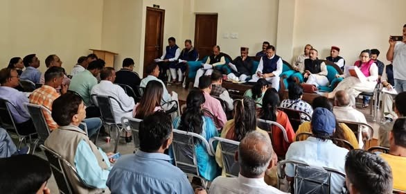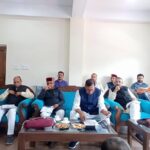 डा. राजीव बिन्दल सोलन में 23 जून को आयोजित होने वाले त्रिदेव सम्मलेन क़ी तैयारी क़ी समीक्षा बैठक सोलन में लेते हुए।