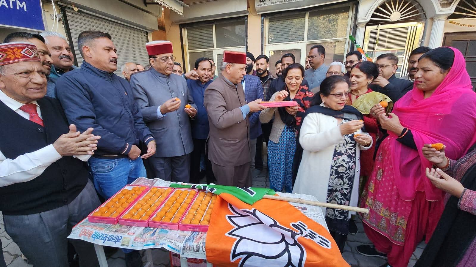 नाहन के महाराजा अग्रसेन चौंक, गुन्नू घाट में आज दिल्ली विधानसभा चुनाव में भाजपा की प्रचंड जीत पर भाजपा कार्यकर्ताओं के साथ जश्न मनाते हुए।
