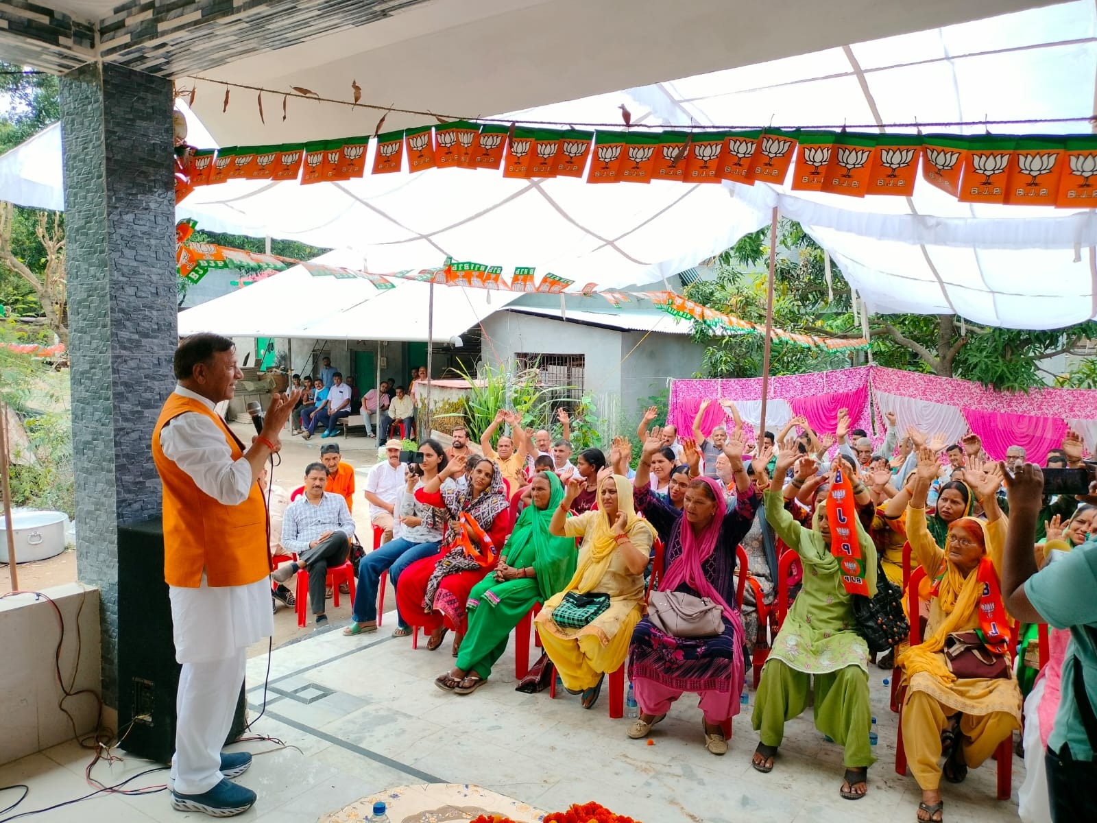 भाजपा प्रदेश अध्यक्ष डा. राजीव बिन्दल भाजपा प्रत्याशी श्री होशयार सिंह के पक्ष में आज जिला कांगड़ा के देहरा विधान सभा क्षेत्र की ग्राम पंचायत ढ़लियारा में प्रचार करते हुए।