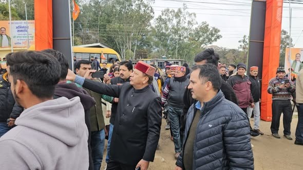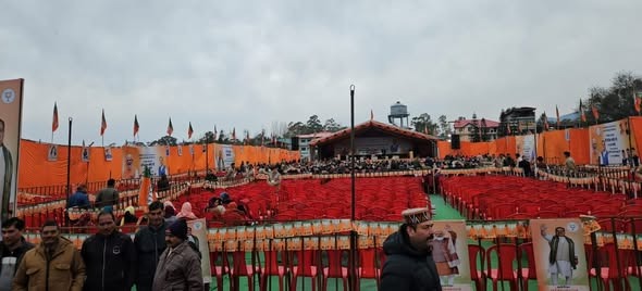 धर्मशाला में जनसभा स्थल पर तैयारियों का जायजा लेते हुए