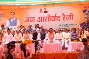 भाजपा प्रदेश अध्यक्ष डा. राजीव बिन्दल ने कहा कि धर्मशाला में आयोजित जन आशीर्वाद रैली में भाग लिया और जनता को सम्बोधित किया ।