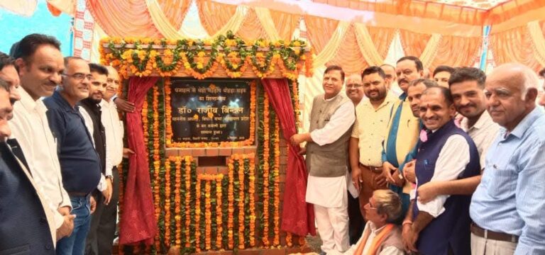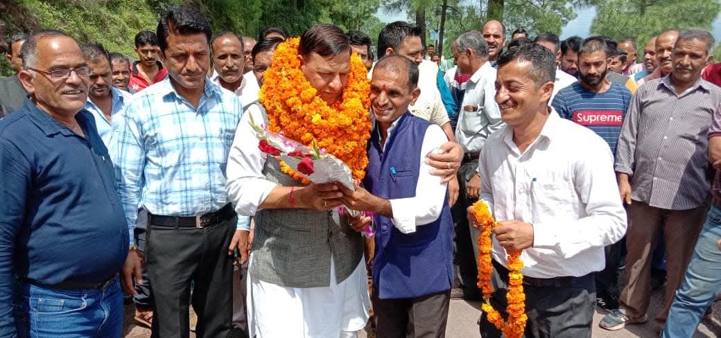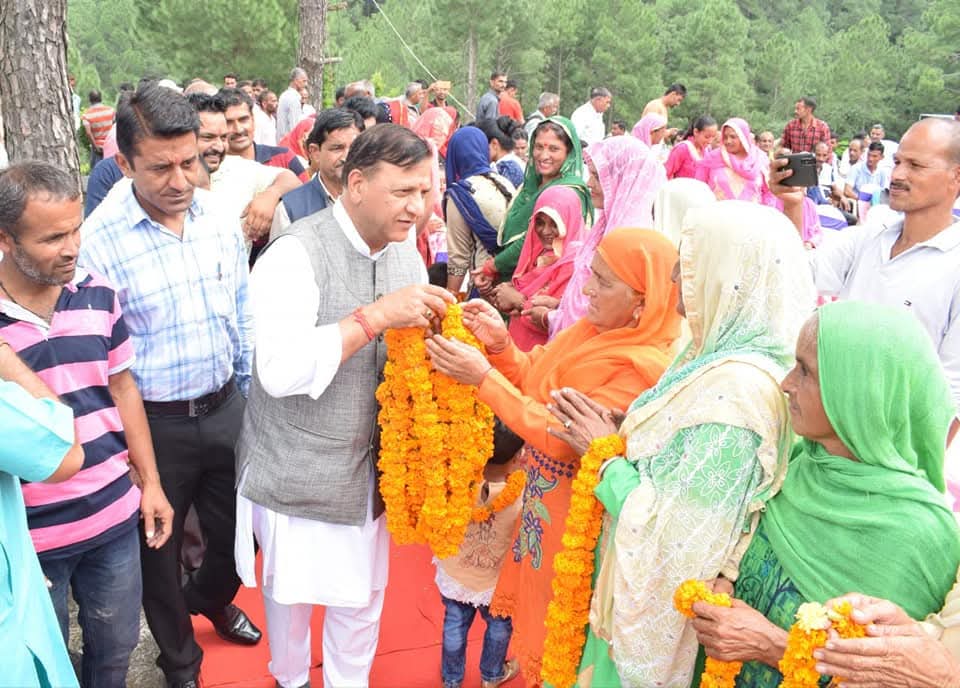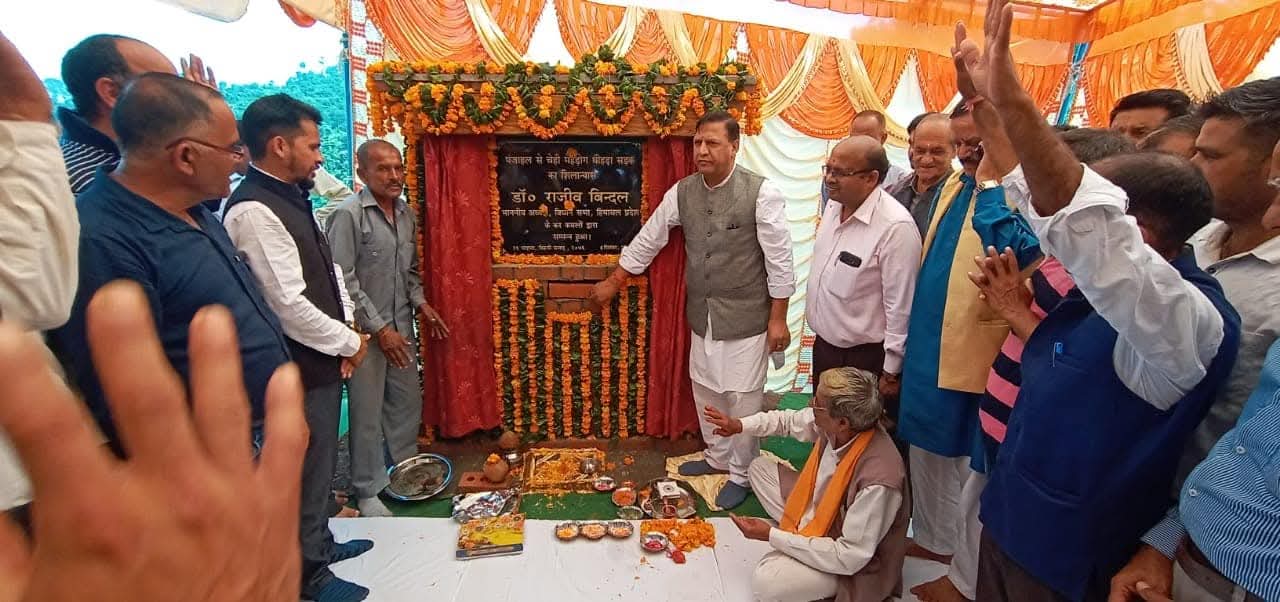 विधानसभा अध्यक्ष डा. राजीव बिन्दल धारटी क्षेत्र में पंजहाल-चई मेहड़ोग सड़क का शिलान्यास करते  हुए।