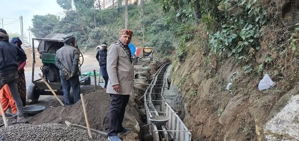 विधानसभा अध्यक्ष डा. राजीव बिन्दल राष्ट्रीय उच्च मार्ग नाहन शिमला पर आईटीआई के समीप चल रहे नालियों के निर्माण कार्य का जायजा लेते हुए..।।
