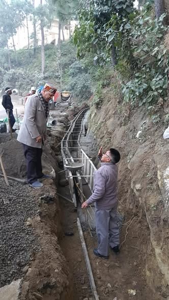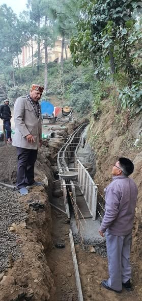 नाहन आईटीआई के समीप नालियों के निर्माण कार्य का जायजा
