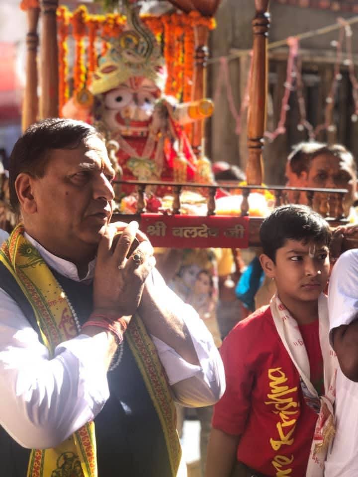 भगवान श्री जगन्नाथ जी की रथ यात्रा आज रविवार सुबह नाहन के बड़ा चौक स्थित प्राचीन जगन्नाथ मन्दिर में पूजा अर्चना और पूर्ण आहुति के साथ प्रारम्भ हुई.! इस पावन अवसर पर भगवान जग्नाथ जी माता सुभद्रा भाई बलभद्र जी के विग्रहों को सुंदर पालकियों तक पहुंचाने का एक बार पुनः सौभाग्य प्राप्त हुआ..! जय भगवान जगन्नाथ सबका कल्याण करना सबको सुख और समृद्धि का वर देना..!! -डा. राजीव बिन्दल