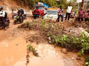 नाहन-शिमला नैशनल हाईवे पर बनोग में डिग्री कॉलेज के समीप आज अचानक भू-स्खलन होने से मुख्य सड़क और साथ लगते घरों को नुकसान हुआ।
