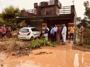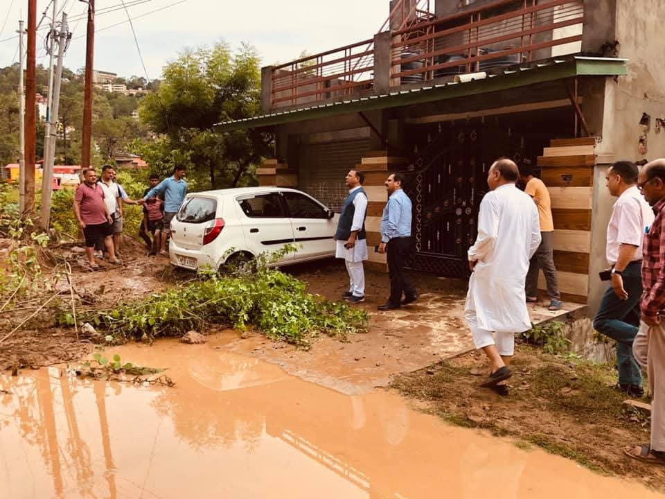 विधानसभ अध्यक्ष डा. राजीव बिन्दल घटना की सूचना मिलते ही मौके पर पहुंच कर राहत एवं बचाव करवाते हुए।