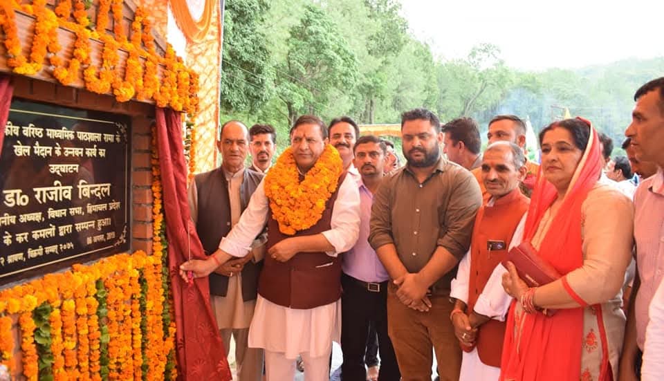 विधानसभा अध्यक्ष डा. राजीव बिन्दल नाहन विधानसभा क्षेत्र के रामा में आयोजित अंडर 14 खेल कूद प्रतियोगता का शुभारंभ करते हुए।