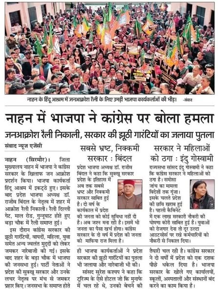 नाहन में भाजपा की जन आक्रोश रैली