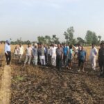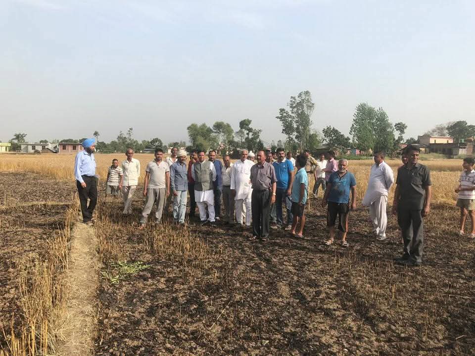 ग्राम पंचायत माजरा के गांव फतेहपुर में आग लगने से फसलों को हुए नुकसान का जायजा लेते हुए।