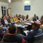 डा. राजीव बिन्दल भाजपा पदाधिकारियों की पांवटा साहिब में आयोजित बैठक में शिरकत करते हुए।