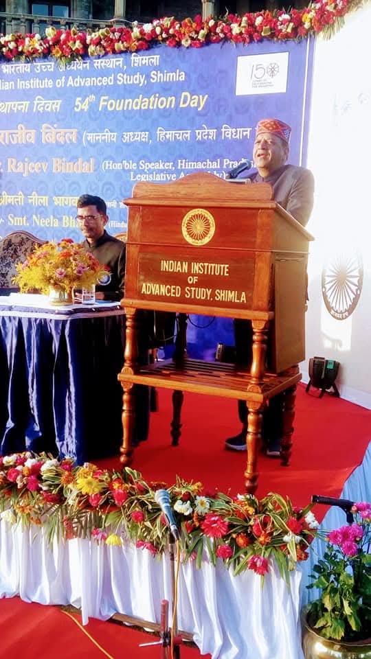 विधानसभा अध्यक्ष डा. राजीव बिन्दल भारतीय उच्च अध्ययन संस्थान शिमला के 54वें स्थापना दिवस समारोह में बतौर मुख्य अतिथि शिरकत करते हुए।