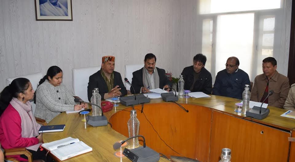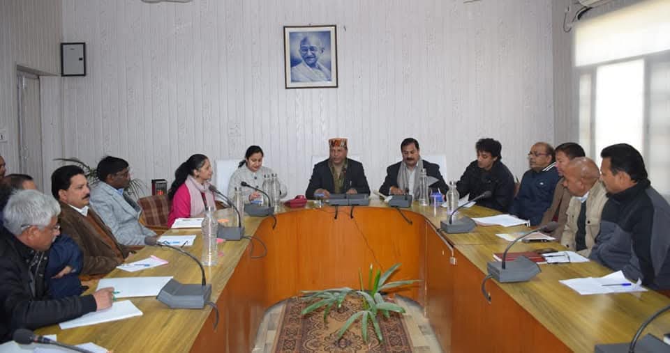 डा. राजीव बिन्दल आयोजन सम्बन्धी विभिान्न विषयों पर चर्चा करने के लिए उपायुक्तत कार्यालय में जिला प्रशासन, नाबार्ड, बैंक अधिकारियों व अन्य सम्बन्धित अधिकारियों की संयुक्त बैठक की अध्यक्षता करते हुए।